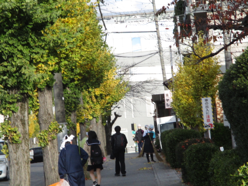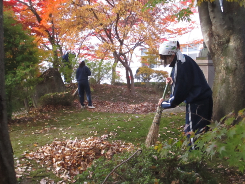 落ち葉の季節になると、「奉仕」の心を大切にする東中生が、箒を手に掃いてまとめ、毎朝を美しく清めてくれるのも、秋の素敵な風景です。