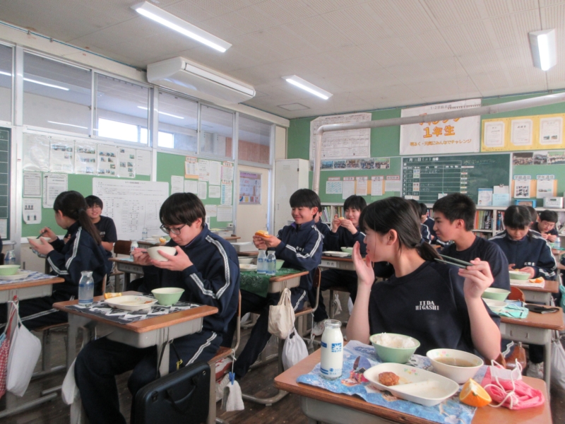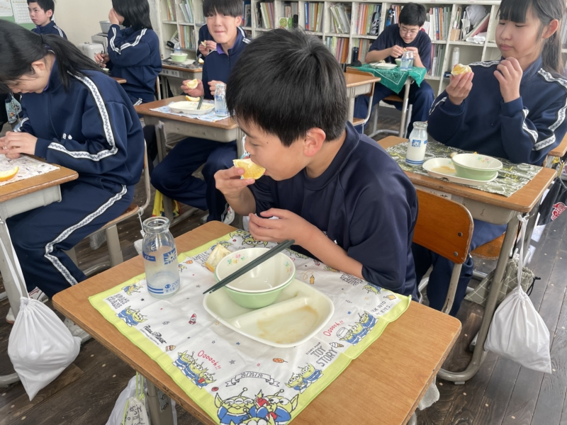 「皮も食べられるの?」「美味しい!」「酸っぱい!」「皮と食べると少し苦いね」など、普段自分たちの生活圏にはみかんがなることがない生徒たちにとっては大変貴重な夏みかんを、大喜びでいただきました。