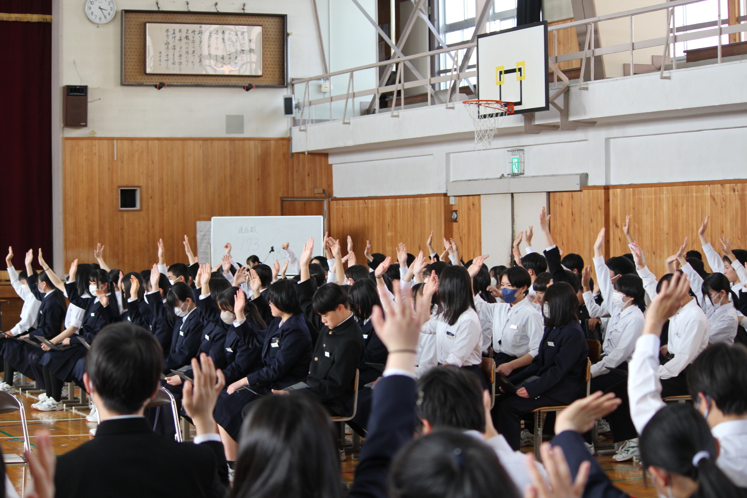 4月18日(金)5・6時間目、第1回学友会総会が行われました。学友会総会では、以下の議案が取り扱われました。